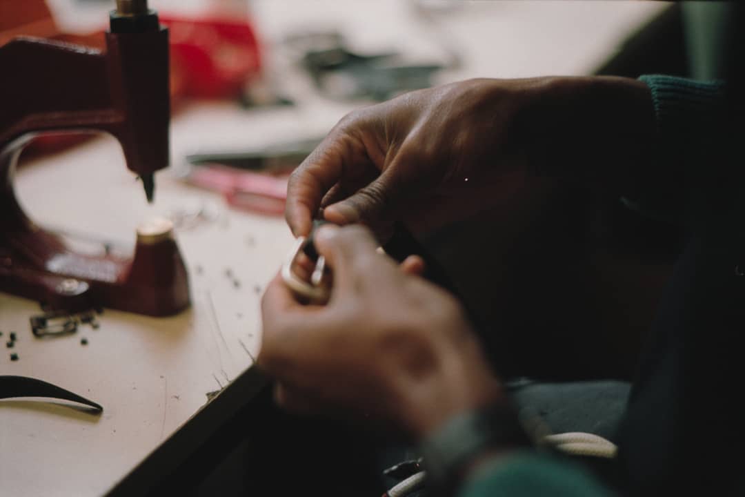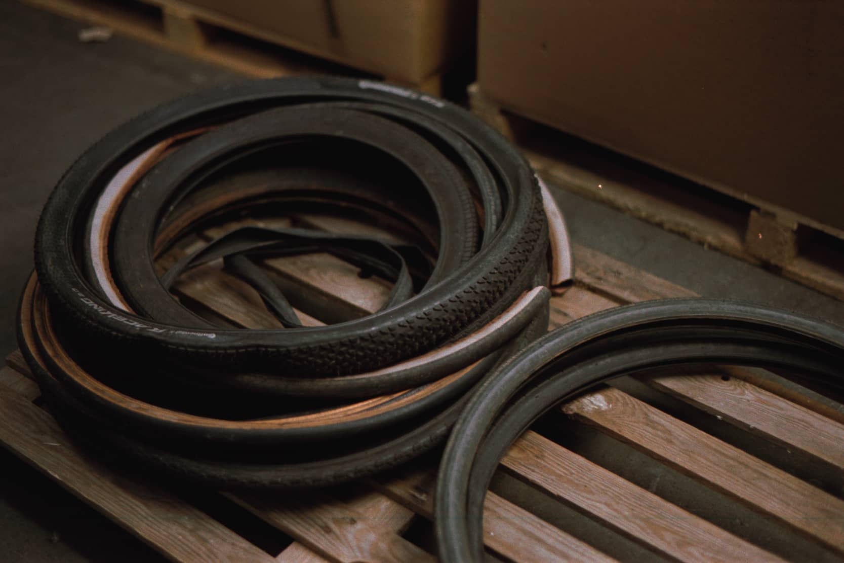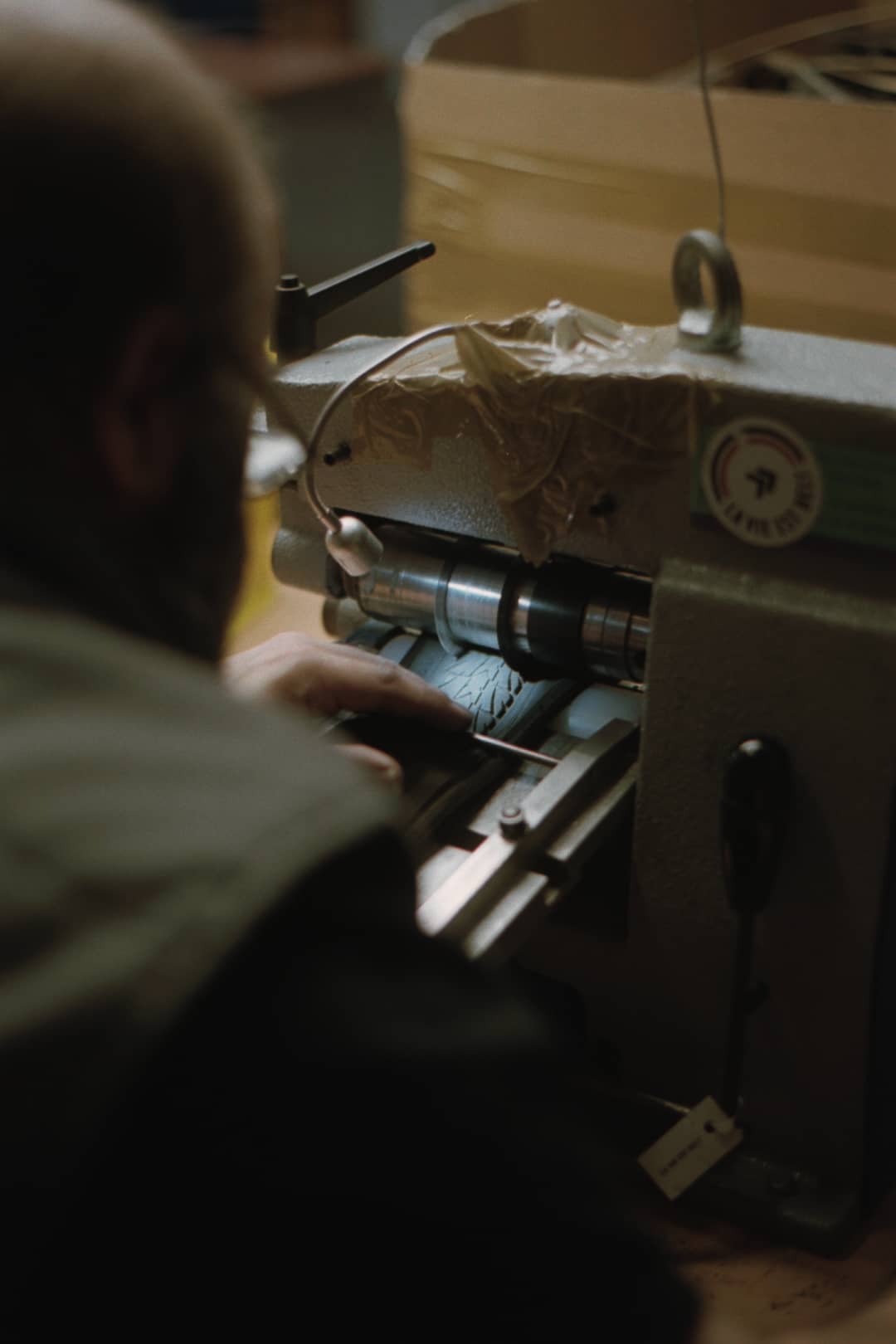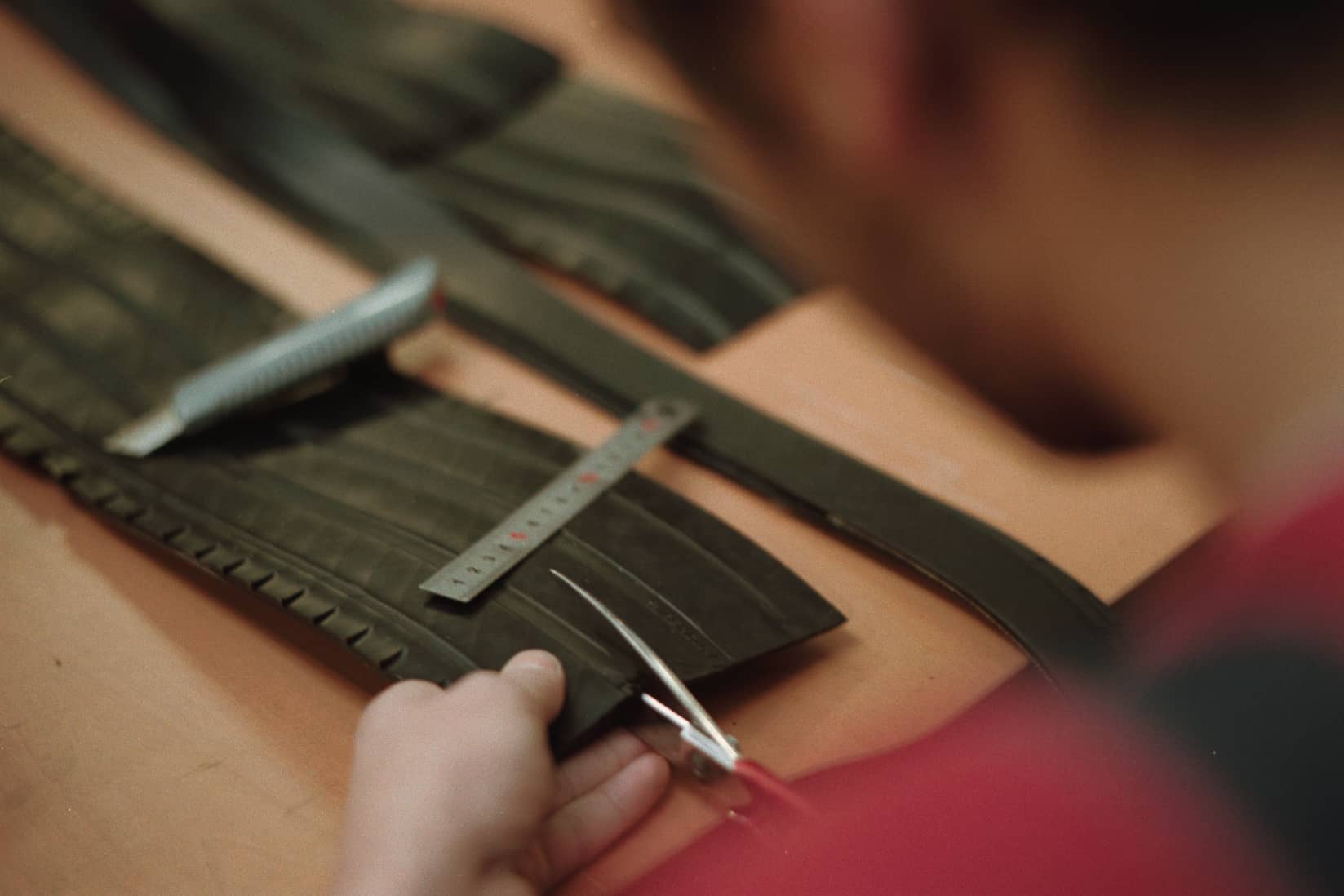 Quelques images argentiques rapportées des ateliers de La Vie est Belt, marque lilloise fondée sur le principe de l'upcycling. Les vieux pneus de vélo, glânés auprès des enseignes de sport, démarrent ici une nouvelle vie : ceintures, porte-clés, etc.
