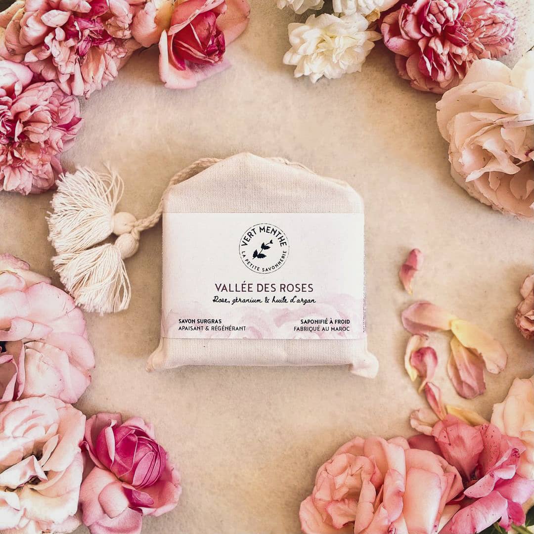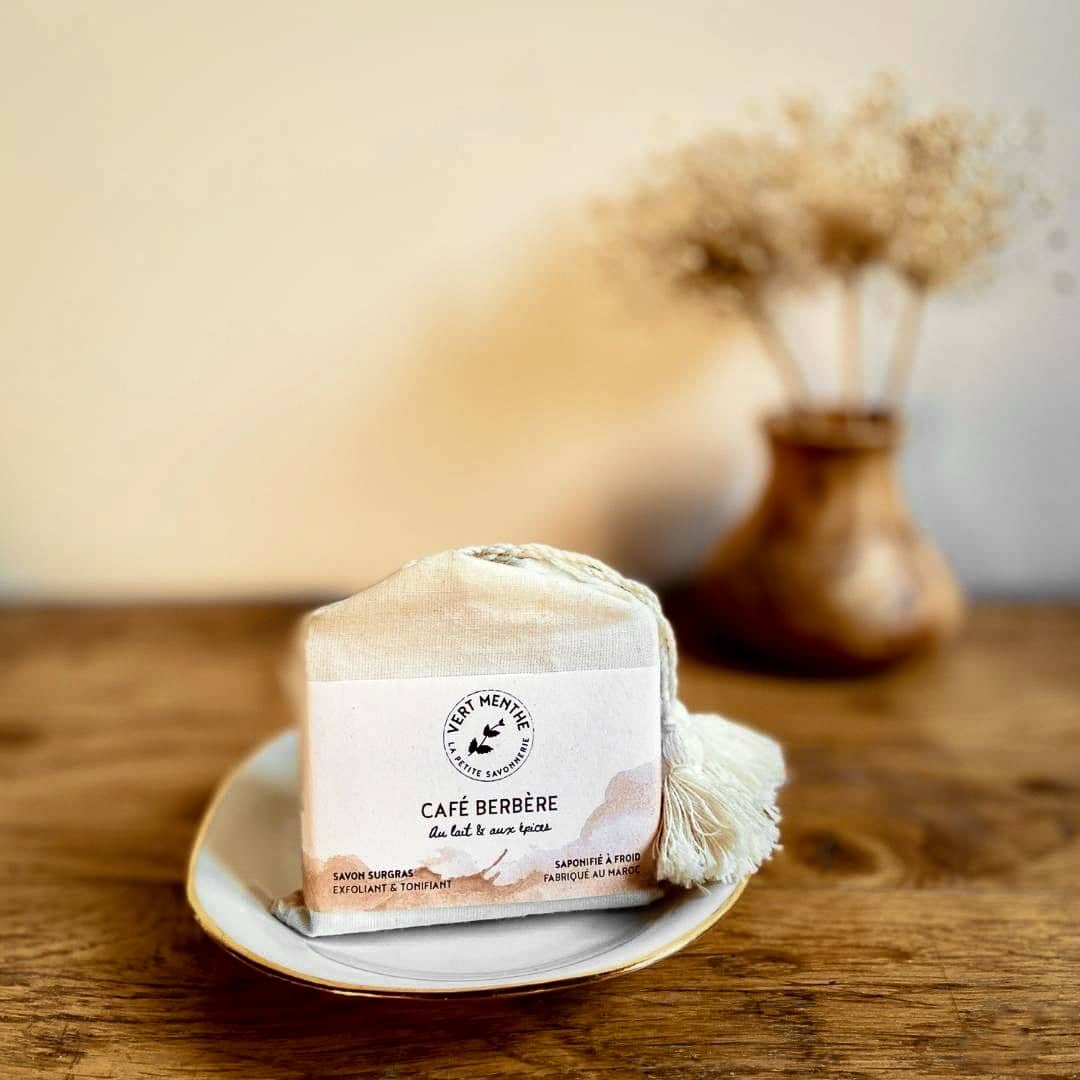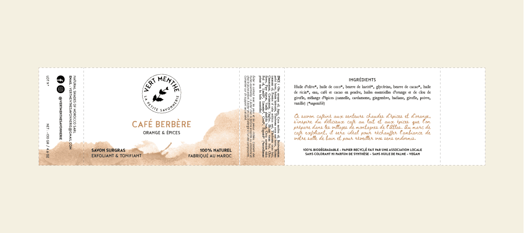 Identité visuelle créée pour Vert Menthe, savonnerie artisanale marocaine (savons fabriqués à la main, naturels, vegans et zéro déchet). Conception du logotype de la savonnerie, de ses déclinaisons, ainsi que du packaging. Crédits photos : @vertmenthe